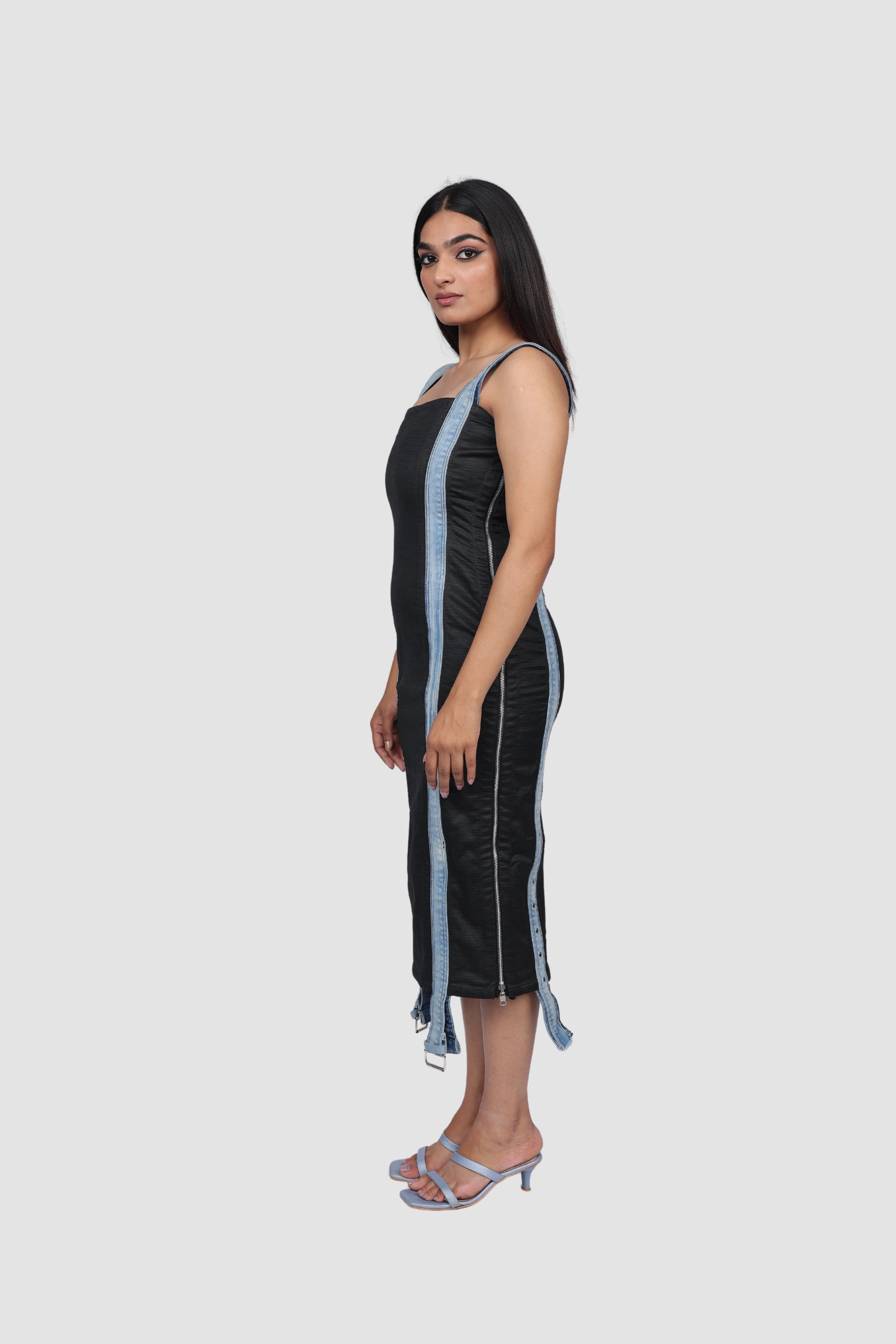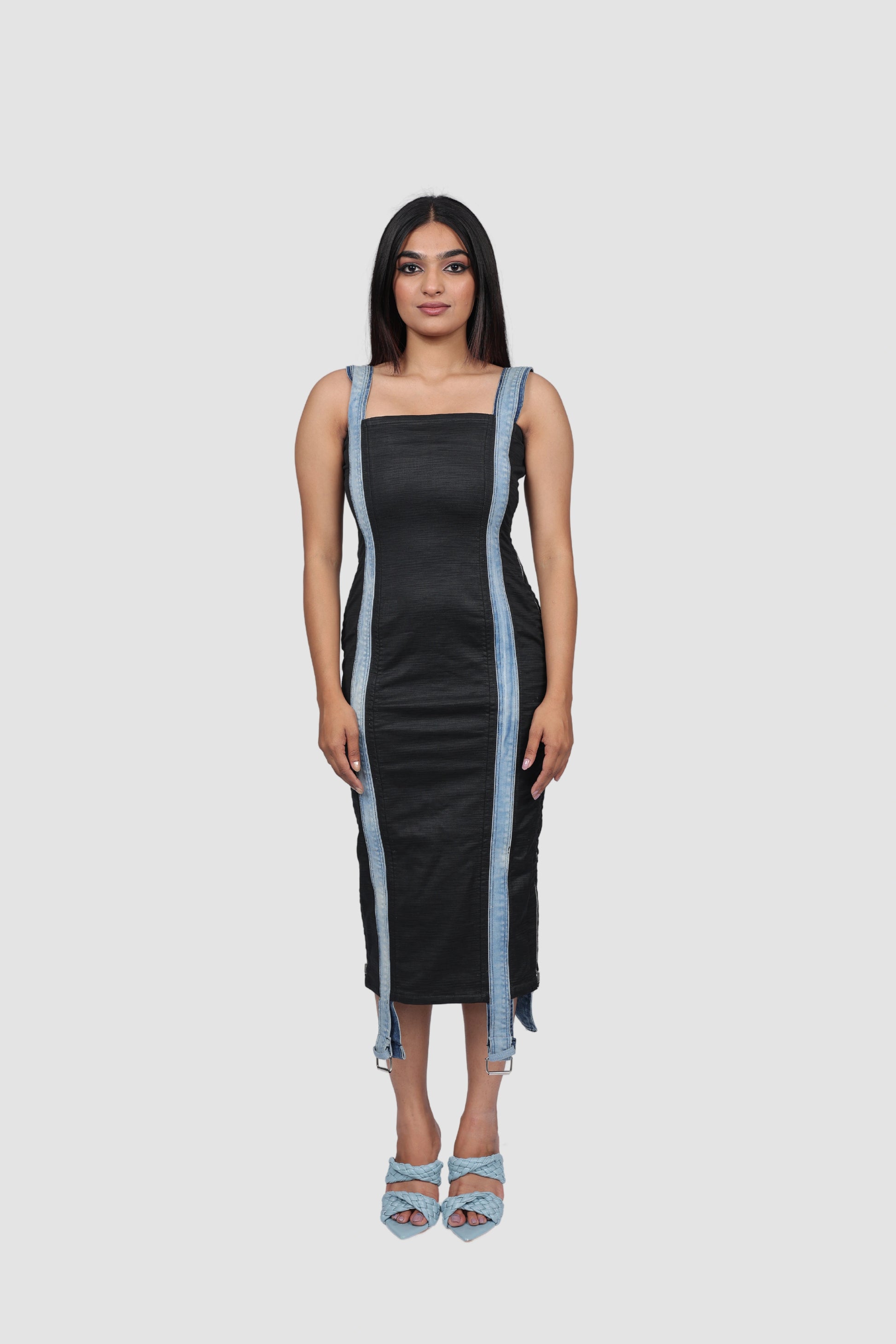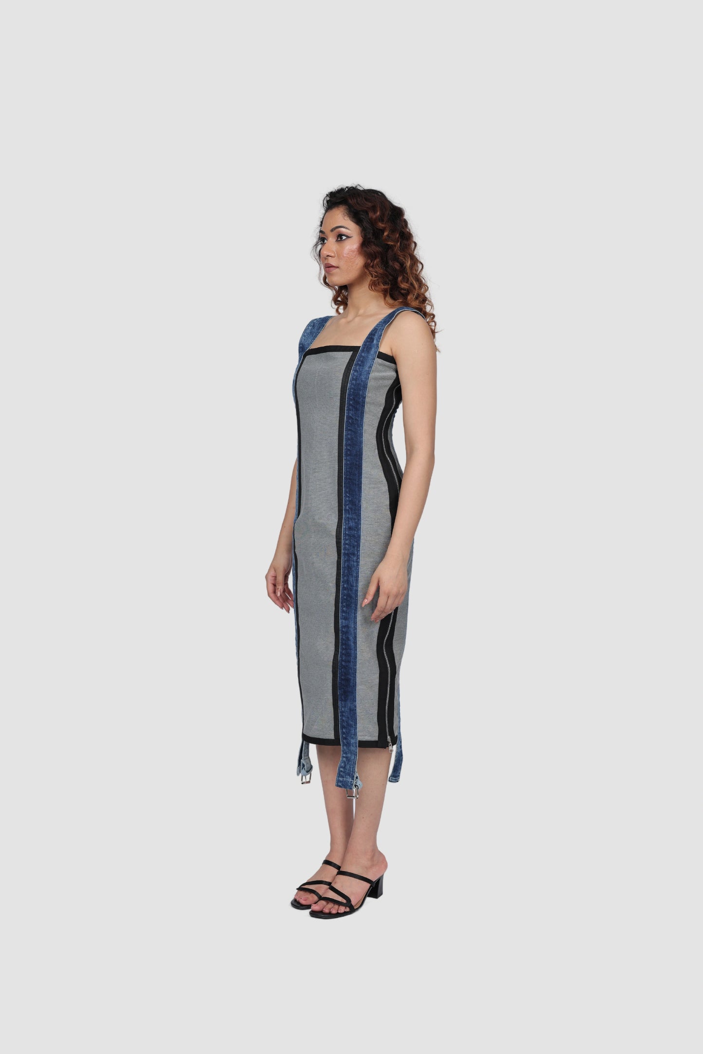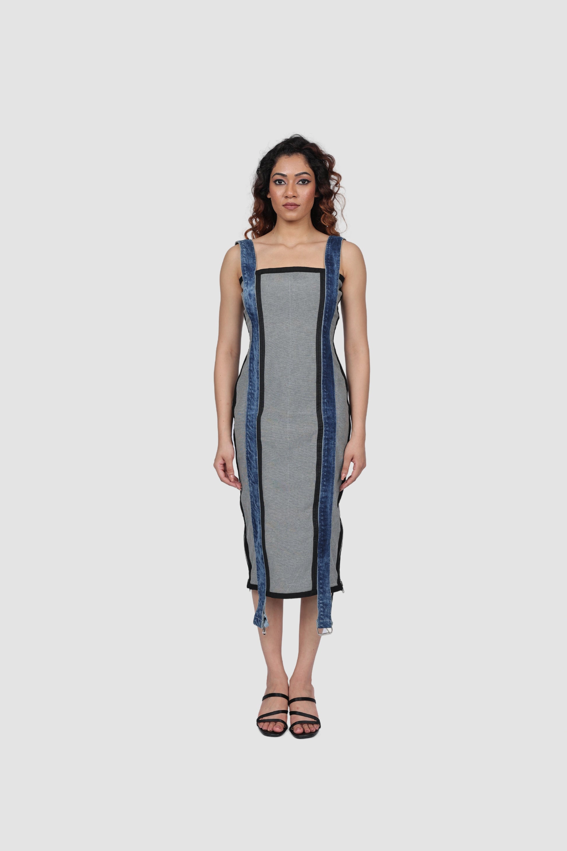 Belts, but placed in a way that acts as a top tier design element that makes the dress what it is. A belt featuring a different wash runs on the other side too, making it possible to rock this design completely reversible! The duality of colours on the reversible side gives it a whole other look than the front so really you're getting the best of both worlds. Wear the dress with the shoulder belt straps on or off and make sure to flaunt those legs by opening up the zippers to your desired length on both sides!