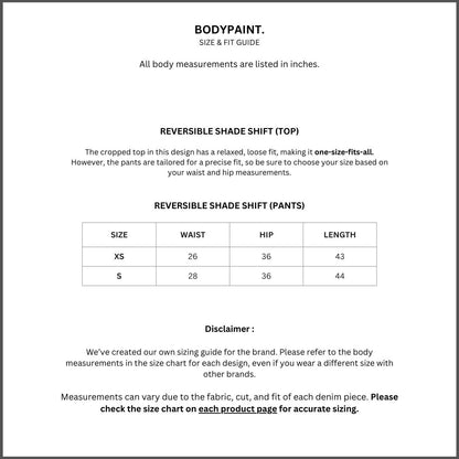 Due to the variation and composition of the denim, along with the cut and fit of each piece, the measurements vary from one design to another. So for the best fit, please take a look at the size chart in the product images for each design before placing an order.